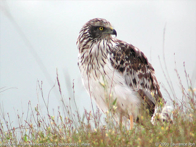 Size 48-56 cm (19-22 in). It is the largest harrier with broad wings and