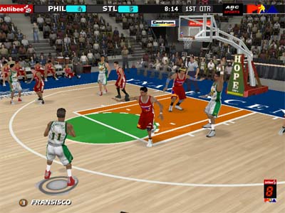 This is a fictional scoreboard with Jollibee ads and ABC 5 logo and PBA logo replaces the default.