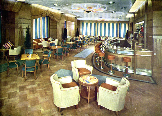She was painted once again in CPS white livery, now with a green band, and the company's red and white chequered house flag insignia was added to each buff funnel. The Palm Court was renamed the 'Cocktail Room', an "Empress Room" was introduced, and the Empress of Scotland emerged once again as a luxury liner.