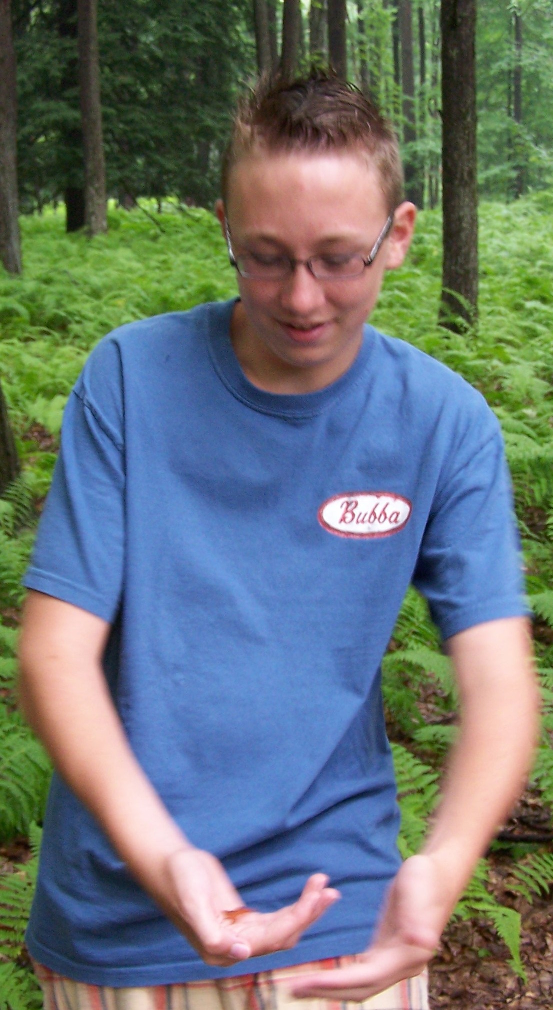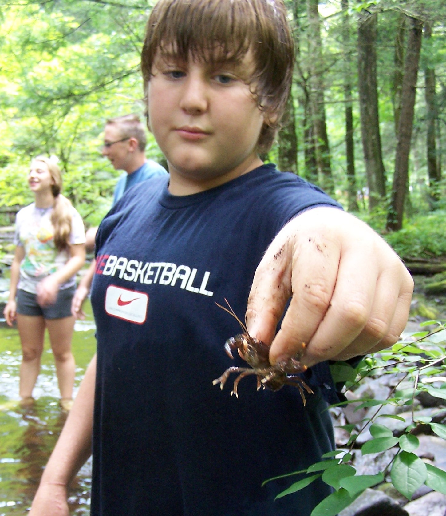 As usual, there were plenty of critters to be found at the Conservation School. Will displays a couple of Red-eft Newts. Claud shows off a crayfish. Christine shows Mr. Gross a tiny American Toad. And, finally, Melinda's mayfly nymph.