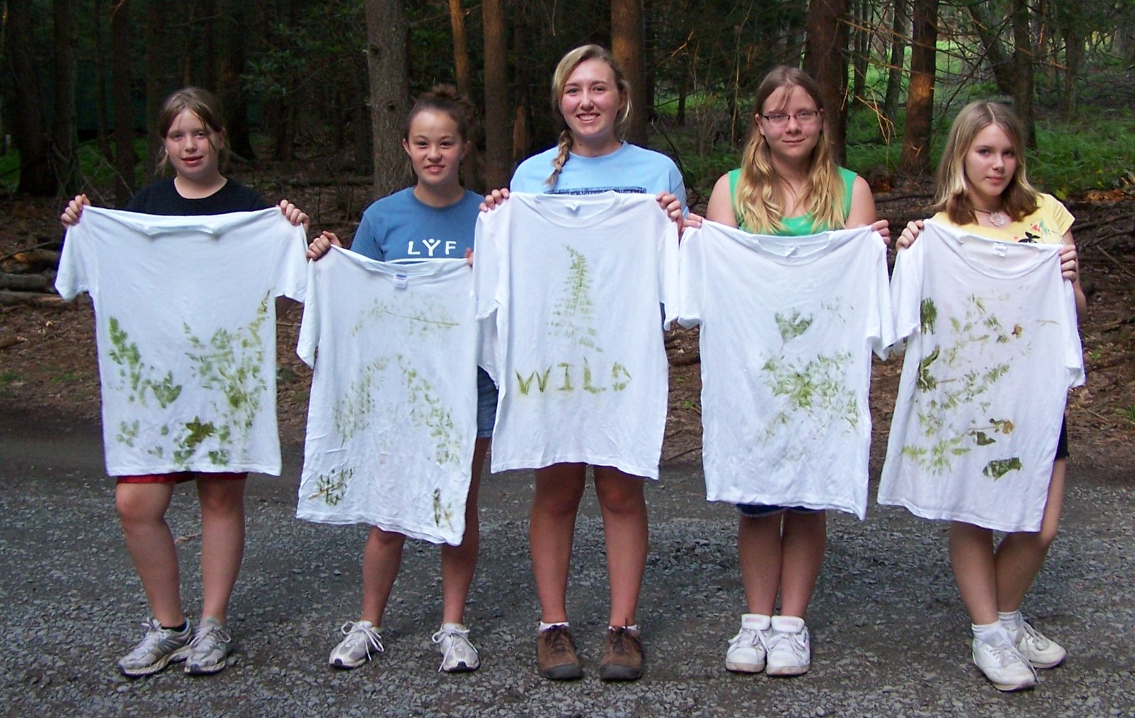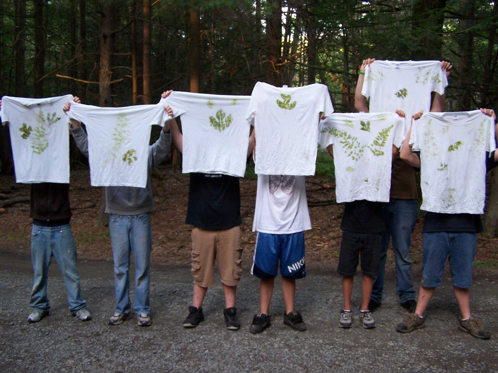 One of the School's recreational activities involved the making of leaf print t-shirts. The girls (above) show off the fine job they did while the boys (below) are obviously embarrassed by their efforts.