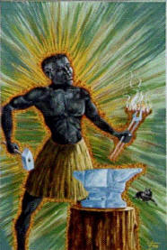 Orishas fuertes Eleggua, Oggún, Oshosi también como Osun que se compara con la