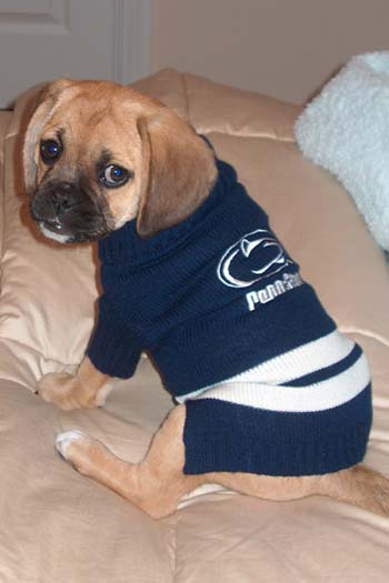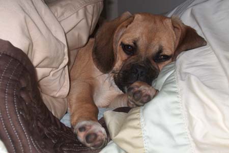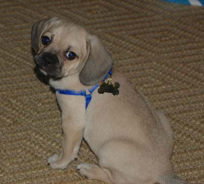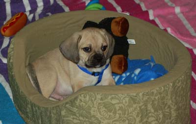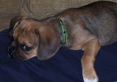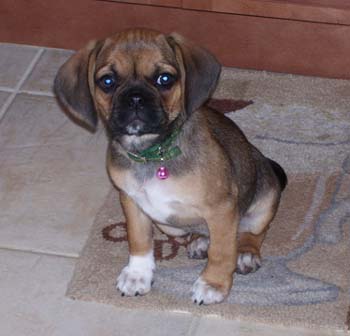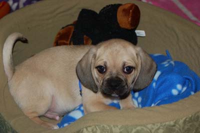 Here are some pictures of our puggle Bailey. He is 12 weeks old now and weighs 12 pounds. We absolutely adore him. He is doing great. So lovable, and loves to cuddle. We could not be happier with him.