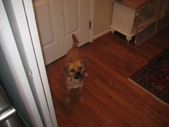 We named the female puggle Bailey. She is truly a wonderful part of the family, not just a pet. She just always wants to be with us all, especially the kids. She is very smart and has is doing very well with her house training. On her Monday October 29 Vet visit she weighed 11 lbs.
