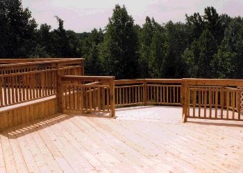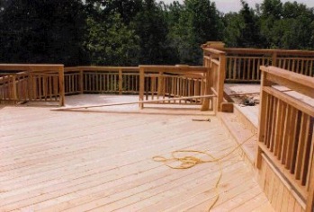 This very large Deck was also built in the late 1990s using Western Red Cedar. Cedar is excellent for building decks in that Cedar has a natural defense against wood eating bugs & rotting. Cedar is very light and looks and smells wonderful when constructed. The only real draw back is it's price. Good rule of thumb when creating your Deck budget is Pressure Treated material is the cheapest, then Cedar, then Composite.