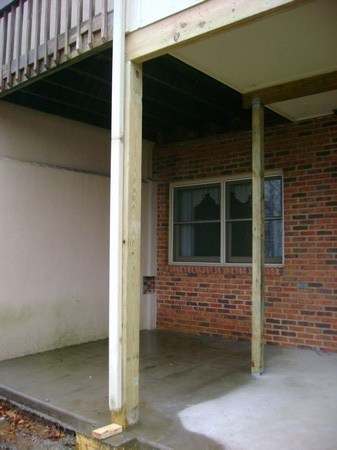 After: Notice the pressure treated beam and thicker post under the structure in the pictures below.
