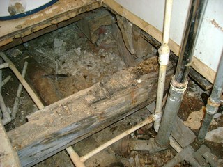 Another problem we faced was when we tried to connect the new plumbing to the existing we have uncovered major water & termite damage. We also found that the existing shower drain wasn't even connected dumping all the waste water directly under the house.