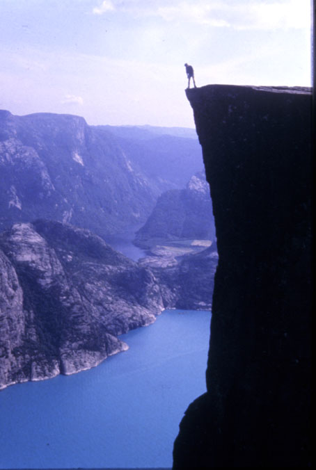 On this picture you see a special landmark here. This landmark actually if formed like like a preacher's chair. On the edge I belive there is a 900 meter free drop right into the sea below