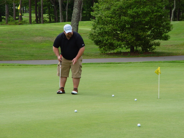 Scott practices his putting. You can tell by the balls he is a bit off target. |
