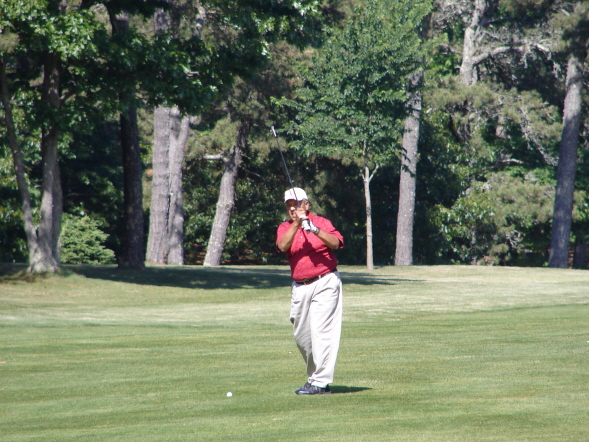 ...and a shorter sand shot. Pretty good form for "The Chief" out of the bunker. | |