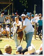 Pony Penning is still held as a three day event today. The last Wednesday, Thursday and Friday in July during the Chincoteague Firemans carnival. 'Saltwater Cowboys' come from all over the world, helped by members of the Fire Company. Wednesday morning, at slack tide the ponies make the swim from Assateague to Chincoteague assisted by the cowboys on a flat barge incase the ponies would be in danger. The ponies are rounded up the week of the swim and kept in a crate behind the woods on Assateague. On the last Wednesday in July the morning of, over about 25,000 people line up in Memorial Park, in the trees, the water, the nearby campgrounds and everything to get a good view. Not until slack tide (in between tides so there is no current in the water) then a flare gun goes off, and the Salt Water cowboys scare the ponies into the water and they make the swim. In the middle it gets about 25 feet deep. Once they cross to Chincoteague, they rest for about an hour, and then are herded through town to the carnival grounds for Thursday, the auction. |