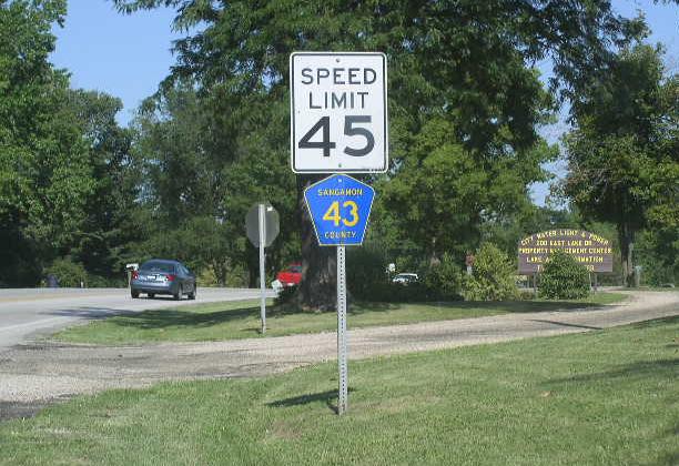 Sangamon County Highway 43 is a ring road around Lake Springfield. SCH 43 passes through the following town in Sangamon County. Springfield SCH 43 is not multi-plexed in Sangamon County. SCH 43 intersects the following highways in Sangamon County. Sangamon County Highway 56, at Springfield. Sangamon County 28 near Springfield.