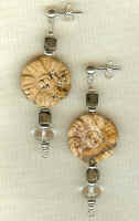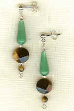 Moonstone Drop Elegant moonstone is topped by a tigereye disc and crystal. Gold-filled ball and post. 2” $36 Transform