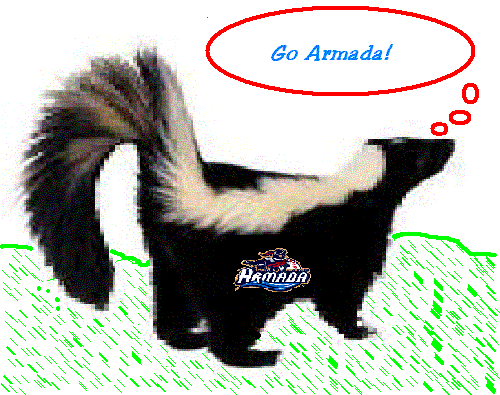 Reek O is the name of my Ralley Skunk I take to Long Beach Armada Games. The Legend of the Ralley Skunk goes like this. At the beginning of the 2006 Golden Baseball League Season, The Long Beach Armada were off to a very slow start. Then, a family of skunks moved on to Blair Field, and the Team's luck changed tremendously. The Long Beach Armada adopted "The Ralley Skunk" and they are now being sold in The Dock Shop at Blair Field in Long Beach, California.