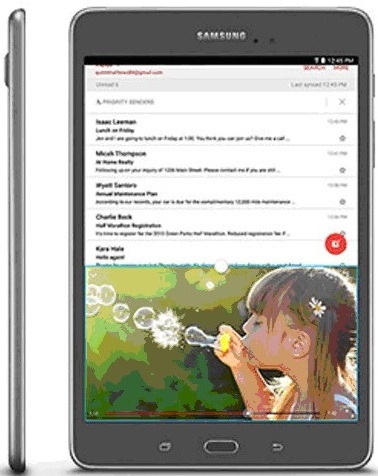 Keep All Your Samsung Devices In Sync Connecting your Samsung devices is easier than ever. With Samsung SideSync 3.0† and Quick Connect™†††† , you can share content and work effortlessly between your Samsung tablet, smartphone and personal computer. Do Two Things at Once Make the most out of your tablet time with advanced multitasking tools. Easily open two apps side by side so you can flip through your photos while browsing online. Check social media and your social calendar at the same time. With Multi Window*** on the Galaxy Tab A, you can do more, faster.