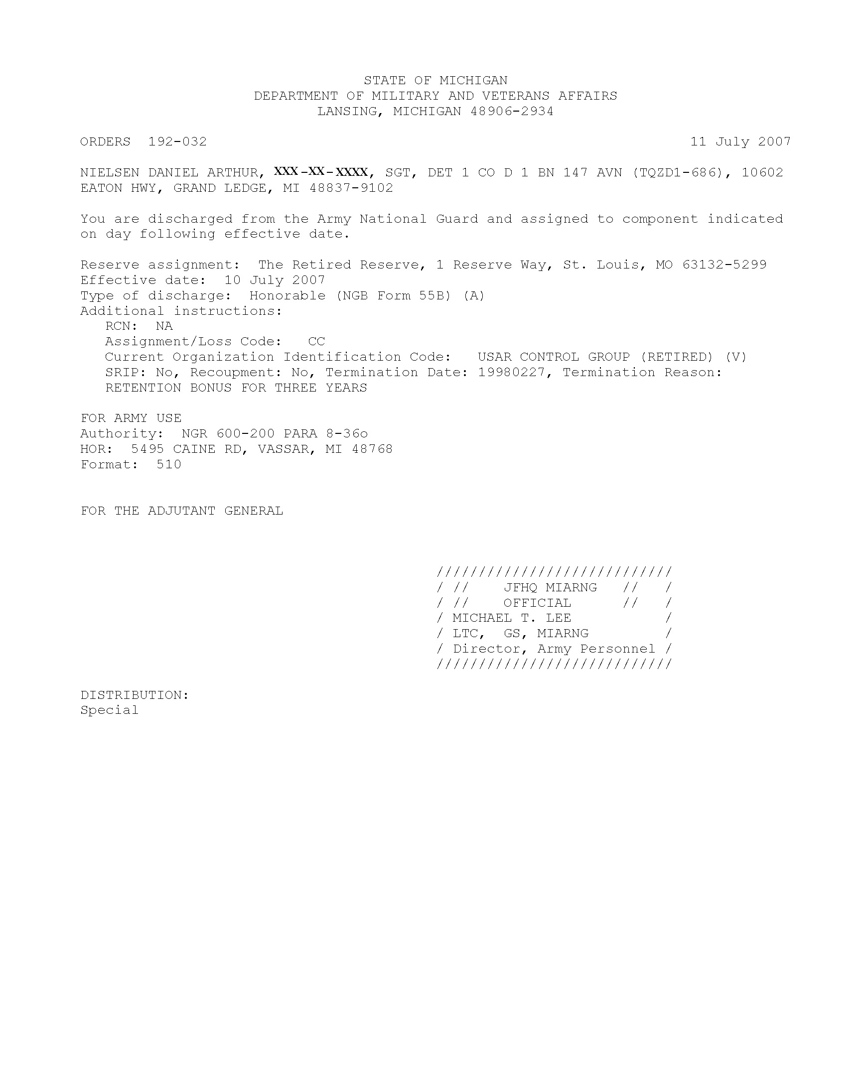 Daniel A. Nielsen, SGT, (Retired), MIARNG