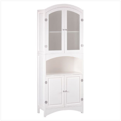 magnetic hardware and veiled glass doors. This wood cabinet is a