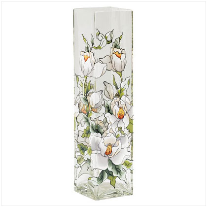 An elegant square glass bud vase adorned with an aristocratic magnolia