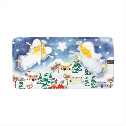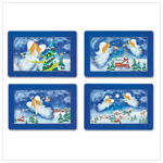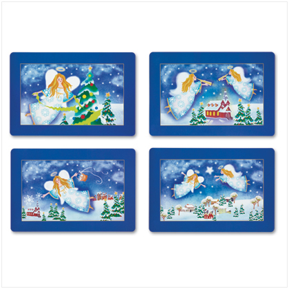 of Christmas Angel placemats, beautifully rendered in holiday hues