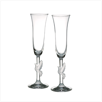 sparkling Gorham crystal flutes with delicate doves gracing the