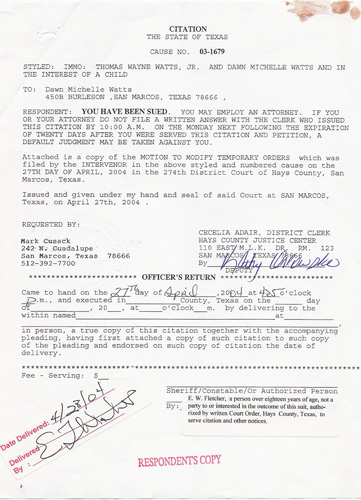 About a week later, I get a CPS note dropped on my doorstep and then am sued....Here are the papers