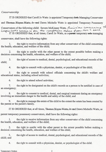 I had less then five days to prepare. I showed up alone, no family , no friends, no lawyer. Just me against the whole Watts clan, one NSA, one a Crisis Center Worker, one works for the police, all I am deathly afraid of, and of course Mr. Cuscack.
