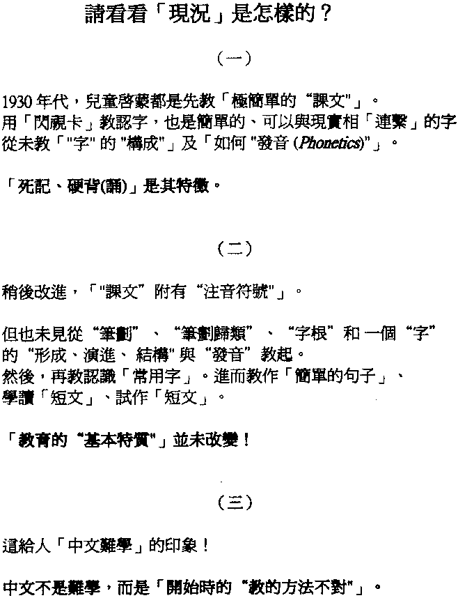 從未教「"字" 的 "構成"」及「如何 "發音 (Phonetics)"」。
