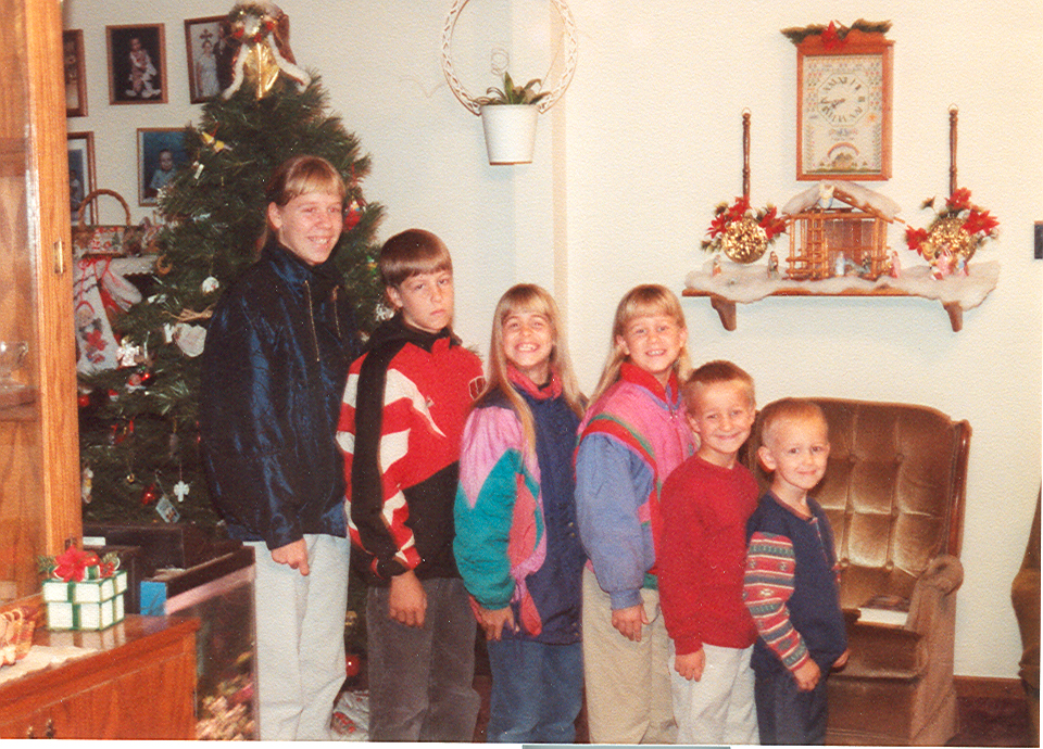 Jennifer, 20, is a junior in college, Jason, 18, is a freshman in college, Kacie, 17, is a senior in high school, I, 15, am a sophomore in high school, Zachary, 13, is an eighth grader, and Aaron, 11, is a sixth grader.