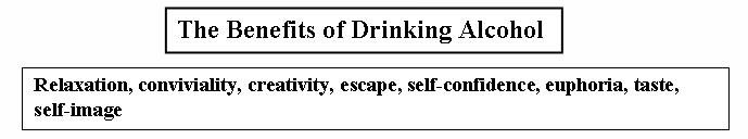 The benefits of drinking include not just the euphoria and the taste--some of us love to view ourselves as party people and not party poopers. Some of us even get creative when we drink a bit, and an occasional escape from reality is not a bad thing. Constant need to escape from reality or constant need to bolster confidence with alcohol are not such good things. Harm reduction urges people to find better solutions to these problems than constant alcohol use.