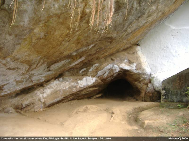 Just at the bridge is a ancient cave temple with the image house buit using a natural rock cave. This date back to the time of King Vattagamini Abaya (better known as King Walagamba) in the 1st century BC but the current building belong to the Kandyan Era. On the far side of the building is a flight of steps which leads to a large rock cave. King Walagamba is though to have been using this cave during time he was hiding from a Indian Invasion in Capital Anuradhapura. On a side of the cave is is a damp tunnel. This is said to be a secret tunnel buit by the king to as a escape route. This tunnel is said to be connecting to the tunnel at Dowa Raja Maha Viharaya which lies on the main Badulla - Bandarawela Road. and the Rawana Raja maha Viharaya close to the Ravana Ella. The tunnel is caved in today and is taken over by Bats. Getting There