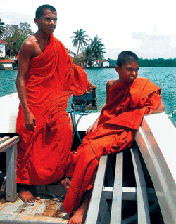 The Vihara and the temple by itself pervades a mushy and a tranquil aura. It is an ideal venue to soothe the weary nerves. The ripples of the Maadhu Ganga waters also remain serene to add to the backdrop which is also seen as an ideal abode to empty the volitions of the human minds in his fiercely competitive and stressful world. There are thousand of devotees who visit the venue and the access is two fold. One access is through Bentota and that is also by boat which is the access for the tourists while the locals use the approach through the Ahungalla entrance which is cheaper and closer in terms of time and money. Though there is no formal charge for the boat service to reach the temple, visitors are expected to pay a nominal amount for the use of the boat and that is money that is used to buy the diesel for the boat which is powered by a Yamaha 8-9 horse power diesel engine On Poya days, there are around 1000 devotees who visit the venue to observe eight precents and the Maha Nayaka was adamant that they should bring in their own alms. Providing meals for 1000 sil observers is difficult and the priest is also keen that they be shifted to another Bana Sala across the river soon, as the handling of thousand people is no mean task. He also said that no visitor is allowed to stay over as that would lead to the withering away of the sanctity of the river abode. In this context, he says that the five priests who live there cook their own alms and do not get any from the devotees, which he said, would preserve the equilibrium there. ` The place has also uniqueness in terms of civil engineering feats as well. The surrounding brackish and saline waters is also conducive for the existence of the temple and it is through an underground pipeline that drinking and other water is supplied there. One of the biggest drawbacks of the venue is the absence of toilet facilities, and another motor boat to ferry the large crowds those grace it. “There have been all political leaders who have come to my temple but no one has provided any assistance for me to run this place,” he said. by Ravi Ladduwahetty See AlsoMadu Ganga - Daily Mirror, January 17, 2007