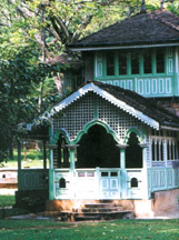 The colourful and hypnotic patterns are occasionally broken by images of Queen Victoria and other such quirky colonial images as the sterling pound sign appearing on the tiles. This was just one of the ways in which the Disawe rebelled against his colonial masters. A staunch anti-colonialist throughout his life, the Disawe probably inserted the images of the colonial administrators within the tiles so that all visitors would walk over them - the ultimate insult to the foreign administrators. The staircase and doorways are all constructed using tamarind, jack and satinwood. Unique architectural features, specialized rooms for storage, rest and recreation and the indoor gardens which bring nature into the home make this Wallauwwa a fascinating place to visit. Many of the archways into the grounds are unusually low and this was apparently done so that visitors on horseback would have to dismount before entering. This also ensured that anyone entering the grounds, especially the taller-than-average foreigner, would be symbolically 'bowing' as they entered. A testament to the Disawe's religious fervour is a wide-branched bo-tree which stands right beside the entrance to the house. Also at the front of the Wallauwwa is a pirith-mandapaya, a permanent structure for hosting of religious events and almsgivings. The floor of this from section is laid out in a tile mosaic and the top end has an inscription of "good luck, 1905" alongside a shoe horse design. The rich latticework and the imaginative floor designs are a beautiful blend of western and local architecture. On the surface of the tiling are to be found blank empty crevices where gold coins and precious gems were once embedded. Beside the main Wallauwwa complex is the courthouse where the Disawe tended to matters of state. Inside the structure, on the rear wall is a fading motto of the then British administration. Beside the motto is found small room which served as a holding cell. It's said that the Disawe would on a day-to-day basis deal with issues regarding land, livestock and even issues of matrimony, acting as both the judge and the jury. Another fascinating feature of this estate are the extensive gardens. Three separate boundary walls segment the garden. In the middle lies a fountain. Most probably a majestic sight in its day, today the fountain lies broken and empty. The Maduwanwela Wallauwwa has been home to six generations of the Maduwanwela realm. The current layout of the house dates back to the time of the last in the line of Maduwanwelas. Born in September 1844 Wickramasinghe Wijesundara Ekanayake Abayakoon Mudiyanse Ralahamilage Sir James William Maduwanwela Maha Disawe, was educated at St. Thomas College, Colombo and then later on returned to the Wallauwwa to serve his people. His real name was Molamure, name sake of a highly revered clan hailing from Ratnapura. He adopted his maternal family name of Maduwanwela upon inheriting the estate granted to his ancestors. Part of his inheritance was the role of native chief (rate mahattaya) one of 18 such chiefs in the neighbouring vicinity. The Disawe was married to Kalawane Kumarihami and bore a daughter and with her the long line of Maduwanwelas was brought to a close. A grand portrait of the Black Prince of Sabaragamuwa still stands within a huge wooden frame made out of Kulumediri and tamarind wood. It adds grandeur to the Disawe who indeed lived the life of a prince. Under the supervision of the Archaeological Department, in 1974 the Wallauwwa was converted into a museum. Source : Sunday Observer, 8 October 2006 See AlsoMaduwanwela Mudalinalage Aramaya : Architectural marvel of the Maduwanwela Dissawa era - Sunday Times, January 29, 2006