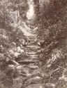 The flight of steps leads from the terrace of the Assembly Hall to the Ambastala plateau. Each step is about 28 feet long. The height is 6 inches. The width is 11 inches. At Ambastala or the plain of the mango trees is the living quarters of the residing Bhikkhus at Mihintale today.