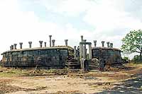 I first visited Tiriyay in 1974 with a group of pilgrims on a crimson evening of a Poya day. As we turned, in a corner of the jungle road we saw the Vatadage atop a hill silhouetted in the evening light thrusting its majestic pillars into the riotous sky almost in a gesture of prayer. An indescribable feeling of pride and reverence overwhelmed me and the other pilgrims as we stood enthralled by the beauty of the spectacle above us. Having climbed the 280 easy steps to the summit we tarried awhile in the gathering dusk until the great poya moon rose over the sea and clothed the shrine in a sheen of silver. In that silence around us we thought we heard the soft tread of devout feet as the monks of old forgathered for their evening prayer. At the foot of the hill on which the Vatadage stands are two ponds between which a pathway leads to a flight of steps. Huge chunks of rectangular stone dexterously anchored together form a low stone wall flanking the stairway. Halfway up the hill are caves with Brahmi inscriptions, one of which dates back to the pre-Christian era and the other to the first century AD which according to the late Dr. Senerath Paranavithana read as follows: "The cave of the daughter of the Chief Uttiya; And the cave of Pigala Anudi are given to the Sangha of the four quarters" According to archaeologists and historians, these early Brahmi inscriptions are usually found on the brow of caves below the drip ledge. This is so at Tiriyay too. These one line inscriptions are a characteristic of the period between the 3rd century BC and the second century AD. The summit of the hill (about one acre in extent) had been levelled to build a dagaba. In the eighth century the dagaba had been enlarged and encircle by a Vatadage. Around the dagaba are two concentric rows of pillars of exquisite design. There are thirty two pillars on the perimeter and sixteen in the inner circle. On the edge of the platform which drops sharply into the plain is a stone screen wall about six feet in height. Four flights of steps from the four directions lead to the dagaba. On the eastern side the flight of steps ends in the neighbouring hill which is said to contain the ruins of monastery buildings. Stone statues of the Buddha lay on the ground fallen from their stone pedestals. The well preserved guard stones have a character of their own. According to the Archeological Department the guardstones at Tiriyay appear to belong to a phase earlier than those found near the Thuparama and the Ratmalprasada at Anuradhapura. Moonstones, Makara balustrades, flower altars and the naga guard stones are works of exquisite beauty. Workmanship everywhere is of an extremely high order in keeping with the genius and artistry of our gifted ancestors. The origins of the shrineA long sanskrit inscription on a rock boulder states that this shrine was founded by a company of merchants led by Tapassu and Balluka. They were the two merchants who had the privilege of offering the Buddha the first meal after the attainment of Supreme Wisdom. They had received from the Blessed one some strands of hair from his own head as an object of worship. According to the Pujavaliya the two merchants carried the hair relic in a casket wherever they went on their trading voyages. On one occasion they landed on the north east coast of Sri Lanka somewhere near the Yan Oya estuary. They had gone in search of firewood to cook a meal having placed the relic casket on a rock where it would be safe and secure. After partaking of the meal they went to collect the relic casket so they could take it back to their vessel and proceed on their voyage. But a miracle had taken place. However much they tried the relic casket could not be moved from the rock on which they had placed it. Convinced that this was a holy place the merchants built a cairn around the casket and went away. The Archaelogical Department is of the view that the scene of this miraculous happening had the name of Girihandu which is identical with Girikandi of the Tiriyay sanskrit inscription. It is reported that as the years went by the Buddhists in the surrounding areas came in large numbers to this site on pilgrimage. From these humble but hallowed beginnings the shrine had been enlarged and improved from time to time and by the eighth century it was a handsome edifice towering over the surrounding plain and attracting many pilgrims from all parts of the country. There is no doubt that the area surrounding this sacred shrine was once inhabited by a thriving Buddhist community who maintained this and other places of worship in the vicinity. This view is amply supported by the fact that no less than sixteen places of Buddhist worship have been found in and around the Nilaveli-Kuchchaveli area. The findings at Kuchaveli in the seventies and the collection of parts of Buddha statues in the unpretentious archeological office in Kuchchaveli (I do not know whether it is there now) provides incontrovertible evidence of the predominating influence of Buddhism on these areas in the early years of the Christian era. These beloved shrines had been abandoned under the relentless pressure of invasions from the north and by the eleventh century had gone into decay. Not only archaeologists and historians but all lovers of our rich religious and cultural heritage should visit these long forgotten places which have managed to survive the ravages of time and man. They will not fail to return with hearts full of reverence and admiration for the work of our forefathers, their meticulous attention to detail, and the soul stirring refinement that governed their every action to honour the Blessed one. Perhaps after long years of abandonment and conflict during which time these shrines were lost to us we should value them now more than ever before. It is my sincere hope that with the plans for the development of the war ravaged areas the Archeological Department will be provided with the necessary funds to undert