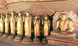 Dating back to the 1st Century BC, this is the most impressive cave temple in Sri Lanka. It has five caves under a vast overhanging rock, carved with a drip line to keep the interiors dry. In 1938 the architecture was embellished with arched colonnades and gabled entrances. Inside the caves, the ceilings are painted with intricate patterns of religious images following the contours of the rock. There are images of the Lord Buddha and bodhisattvas, as well as various gods and goddesses.