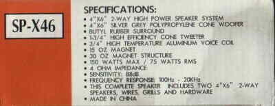 This complete speaker includes two 4 x 6 2-way spearks, wires, grills and hardware.