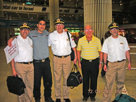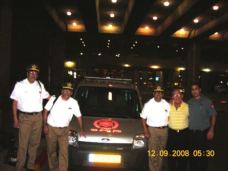 Fotos a la llegada al aeropuerto Ben Gurion. Los esperaban el Jefe de Guardia de las Bombas de Holon y Bat Yam y el Presidente del Instituto Israeli Chileno de Cultura y del Instituto O'Higginiuano de Israel.