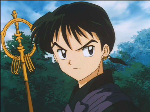Miroku's family was cursed by Naraku. Naraku placed the black hole thing into his grandfather's hand and it passed down from generation to generation. The hole will grow and will eventually suck in it's carrier. If Miroku can kill Naraku, then the curse will be lifted. He joined Inuyasha and company to look for Naraku. On their journey, he tends to lie about sensing evil over the best house, just so they could have a good place to stay for the night. He also doesn't have a problem with blackmailing or taking money for helping the town people. Besides all those wonderful traits, he also has a weakness for beautiful women. He hits on every pretty girls and was very unsuccessful most of the time. He seems to like to grab Sango's bottom, which in turn, ruining every nice moments they could have together.