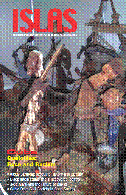 Reflections on the Race Problem in Cuba Black Intellectuals and a Recovered Identity Manuel Cuesta Morúa José Hugo Fernández A Black Cuban Woman’s “Room of Her Own” Yesenia Selier José Marti and the Future of Blacks Miguel Cabrera Peña Melquiades Montenegro Victor Manuel Dominguez Profiles Leonardo Calvo Cárdenas Art and Literature María I. Faguaga Juan Antonio Madrazo Jorge Olivera Castillo Alexis Cardona: Rescuing History and Identity Rogelio Montesinos Parallel Views Is Cuban National Identity Weakening? Are There Cultural Identities? Lourdes Chacón Nuñez Cuba: From Civil Society to Open Society Armando Añel Racism and Injustices in Cuban Prisons Dr. Darsi Ferrer Key West Remembers the Middle Passage Dinizulu Gene Tinnie Prisoners of Color Francisco Herodes Diaz Echemendia Juan del Pilar Goberna |