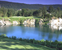 The back nine is named Stone and has a slope ratio of 71.45 from the middle tees. It consists of three challenging par threes with scenic rock faces. Accuracy from the golfers is imperative to maintain a low round. What also challenges golfers on this nine is the legnth. This nine is long and narrow which puts a premium on consistance, however there aren't many obstales to contest with if you stay in the fairways.