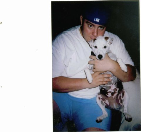 This is me with my dog max, do not be fooled he is pure evil. He is planning evil things right there.