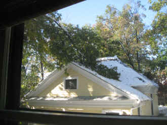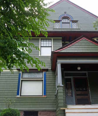 second-story porch was recently enclosed using new shingles