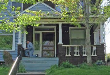 On the right, front porch structure is being rebuilt. Momma