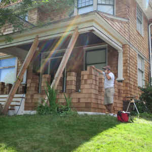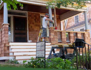 lower portions of the porch were removed for restoration, and