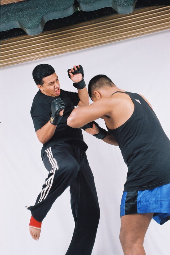 Take off on your left leg [ball of your foot] and start to arrow your right knee towards the chin of your opponent.Your left leg must point downwards and should not be bent or the power in your attacking leg will be reduced.