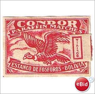 CONDOR PARAFFIN MATCHES ESTANCO DE FOFOROS.BOLIVIA