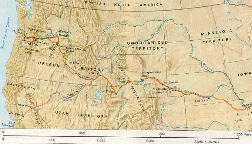 Our direct ancestor is Milton Moses Apperson. In 1847, Milton Moses and his brother Beverly, along with the Beverly’s wife Jane Gilbert Tubbs and their children, left the States with two wagons on a wagon train headed west along the Oregon Trail. From the diary of Emma Ruth Ross Slavin, who travelled as part of this same wagon train, we learn that “...People collecting from all quarters formed themselves into a company, electing Mr. White as Capt. We were known as Capt. W. Co consisting of 42 wagons and ox teams and perhaps hundreds of loose stock.” She goes on to describe the journey crossing the Missouri river into Indian territory.