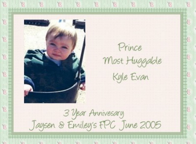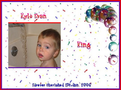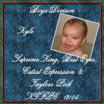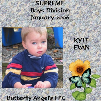 Hi! My name is Kyle and I am 22 months old. I live in NJ with my Mom, Dad, big sister Amber and my dog Boomer. I am very energetic and love to dance and sing. My favorite thing to do is to play with my big sister Amber. I love to play outside and climb things. Three of Kyle's photos have been published in three books: (1)Baby Stories (2)Baby Stories Volume III and (3)Baby Cakes.