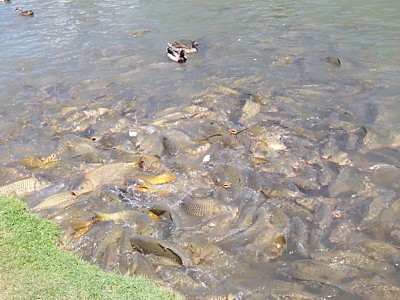 Everything is bigger in Texas they say. Including the fish. These fish are in a lake near our house. We needed to two loaves of bread to keep these guys happy.