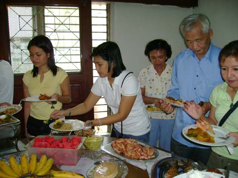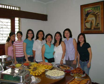 Kare- kareng baka at buntot; Lumpiang ubod; Pancit canton; Hito lagat; Fried chicken; Rellenong bangus & Hipon